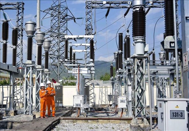 | EVN workers inspect a power substation in the northern province of Điện Biên. VNA/VNS Photo |
